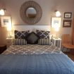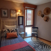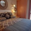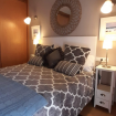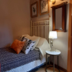 Aseo, habitación doble con cama de matrimonio de 1,50 con acceso a terraza y armarios empotrados. Habitación individual con cama de 0,90 y ventanal a terraza.