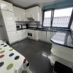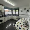 Cocina equipada con lavavajillas, lavadora, horno, microondas, campana extractora y pequeño electrodoméstico.