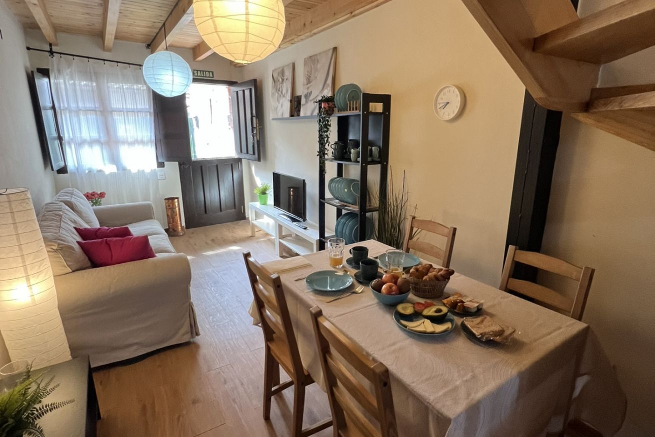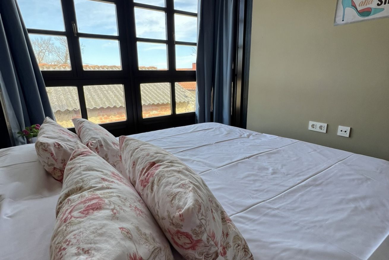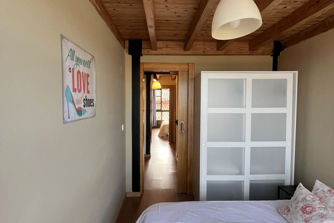 Dispone de 2 habitaciones con techos de madera y cama de matrimonio además de una decoración cuidada y un ambiente tranquilo pensado para el descanso. En la misma planta, baño con plato de ducha . Además, cuenta con un pequeño espacio exterior con mesa y sillas, perfecto para desayunar al sol, relajarse con un café o disfrutar de las noches tranquilas del entorno rural.