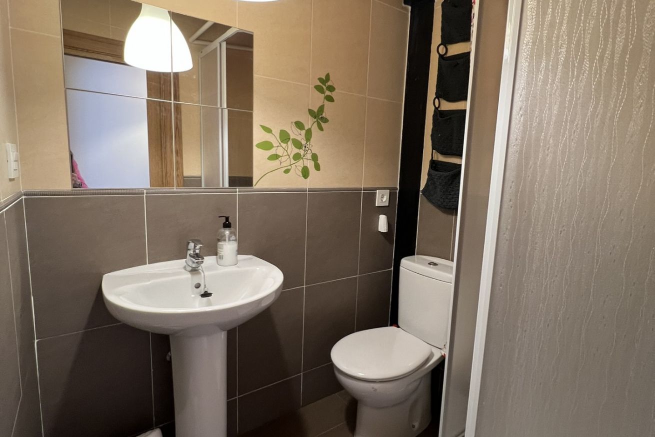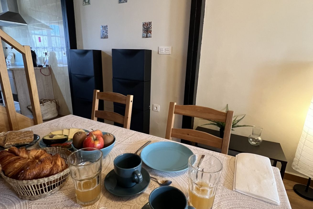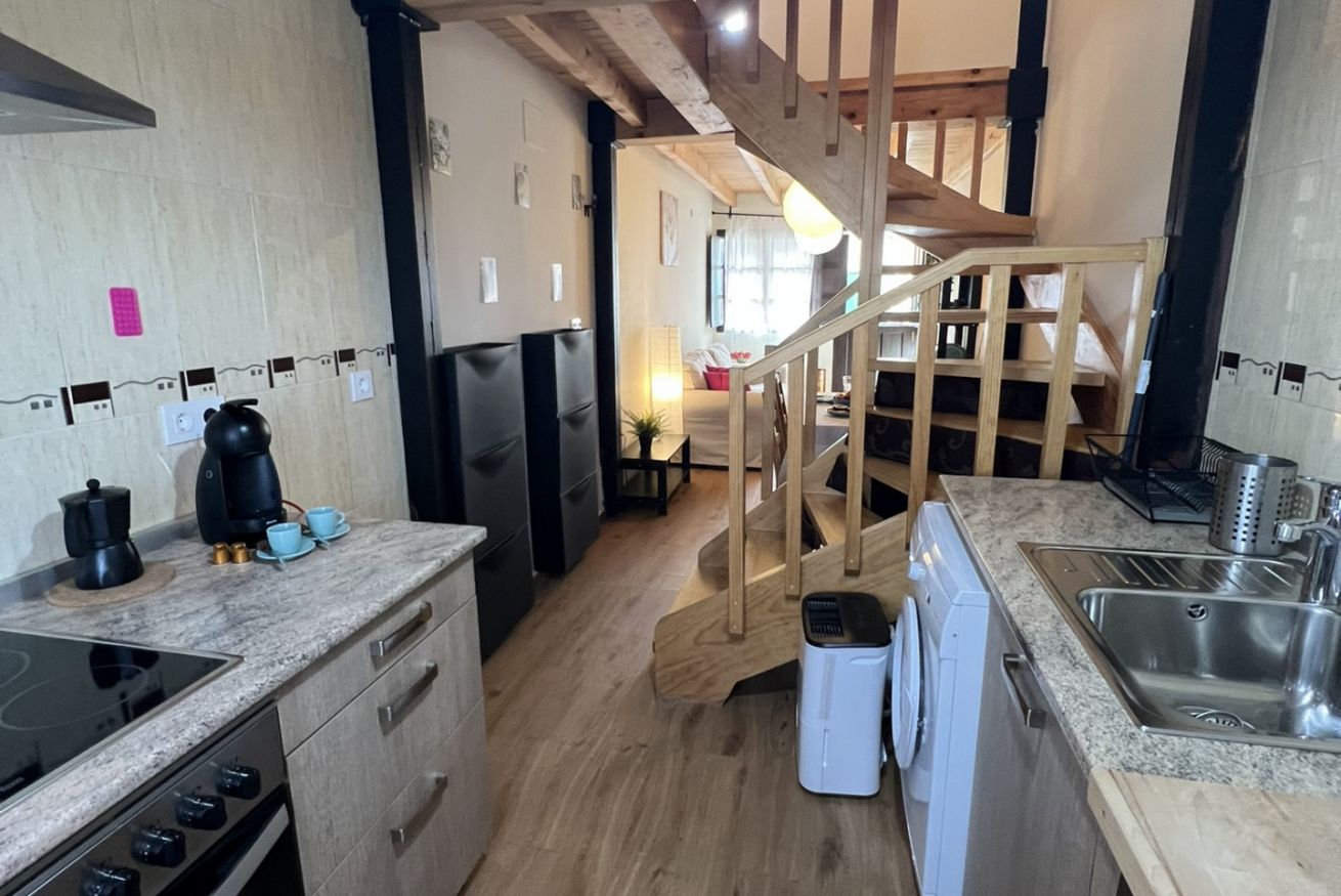 Dispone de 2 habitaciones con techos de madera y cama de matrimonio además de una decoración cuidada y un ambiente tranquilo pensado para el descanso. En la misma planta, baño con plato de ducha . Además, cuenta con un pequeño espacio exterior con mesa y sillas, perfecto para desayunar al sol, relajarse con un café o disfrutar de las noches tranquilas del entorno rural.