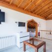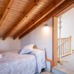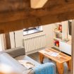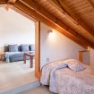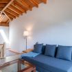 En esta planta bajocubierta completamente abierta, los propietarios han dividido el espacio en dos partes, una de salón con un sofá-cama doble y otra a la que pasamos por un marco de madera con dos camas de 1.05.