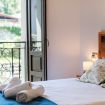 Subiendo por la bonita escalera de madera, en la primera planta tenemos 2 habitaciones con balcón y cama de 1,35. Completa esta planta, un baño completo con plato de ducha grande.