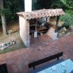 Amplia terraza al aire libre con parrilla en la parte trasera y pequeña terraza en la entrada.