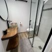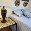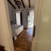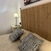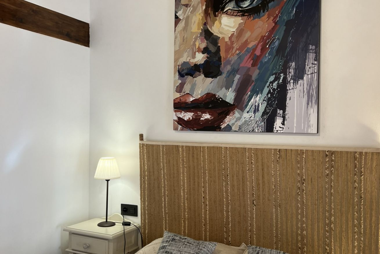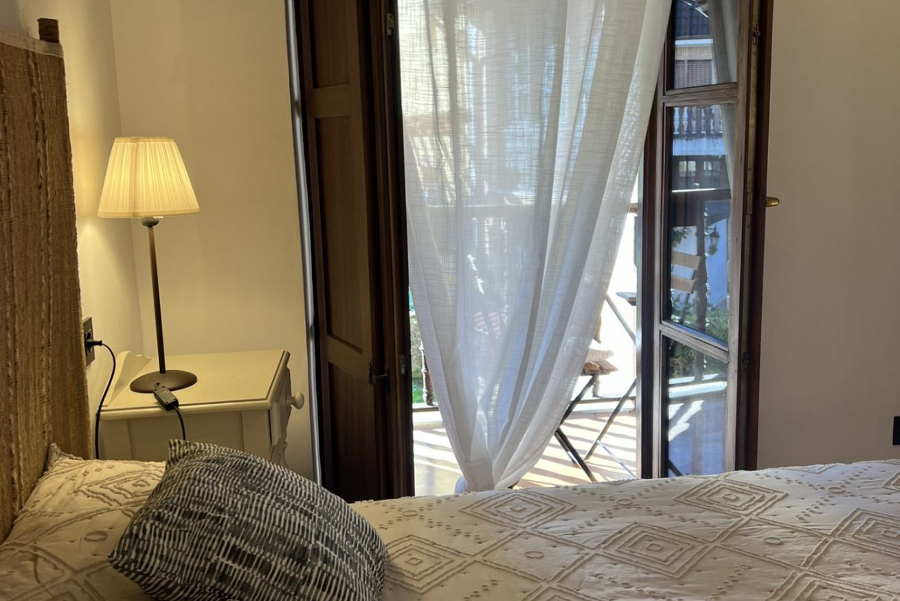 el baño con plato de ducha y el dormitorio principal con cama de matrimonio de 1,50 y acceso al corredor a través de dos balcones.