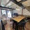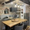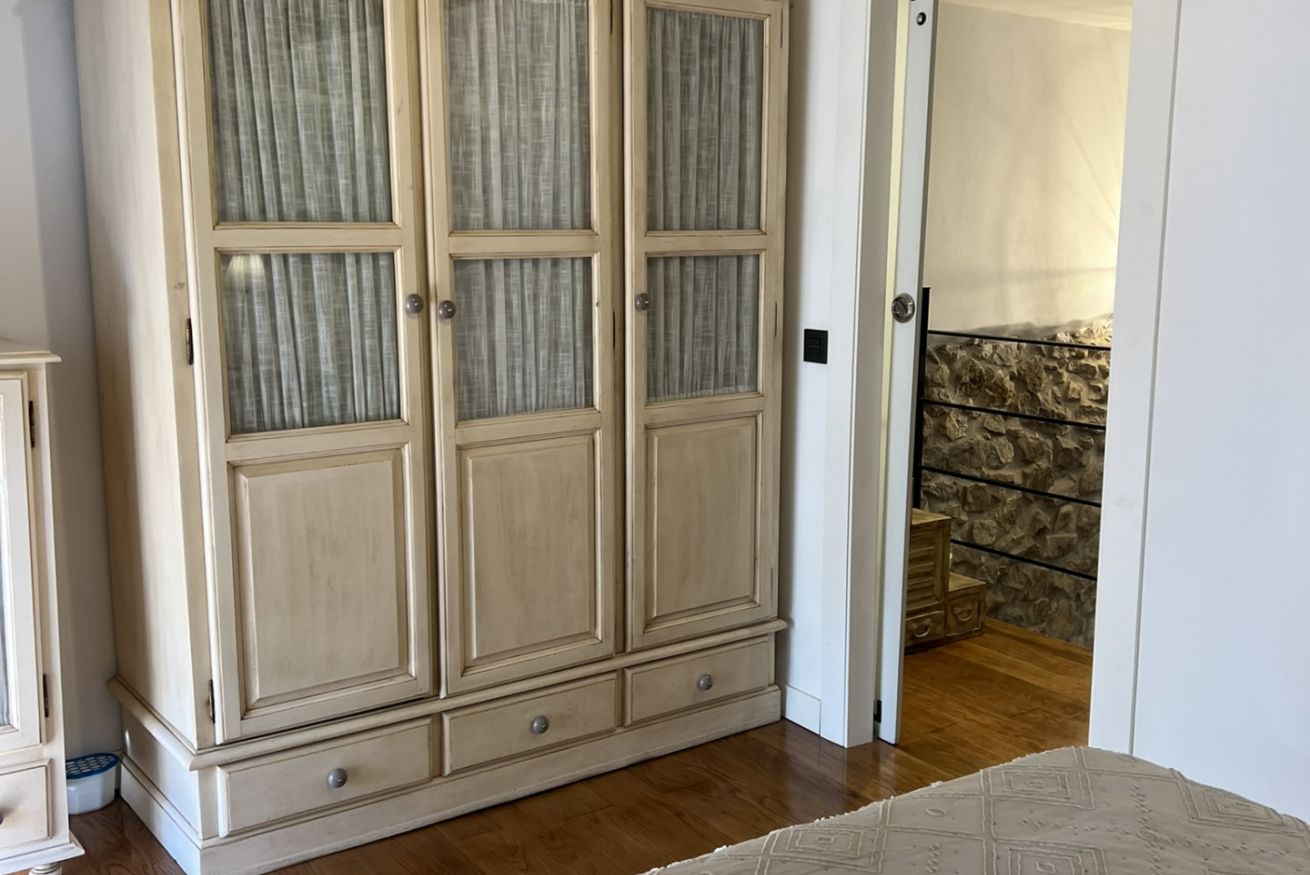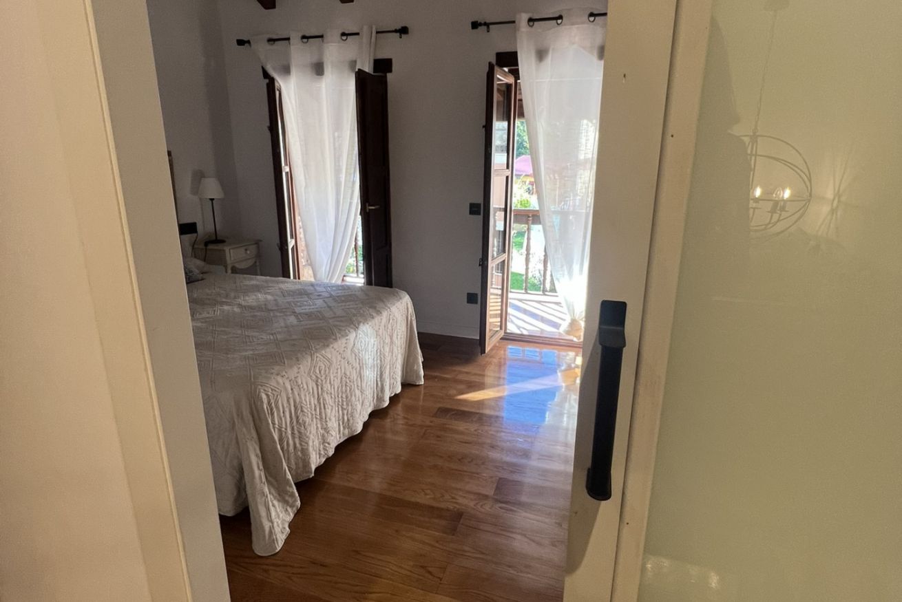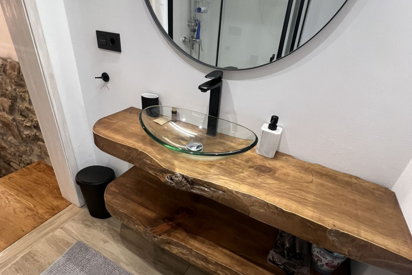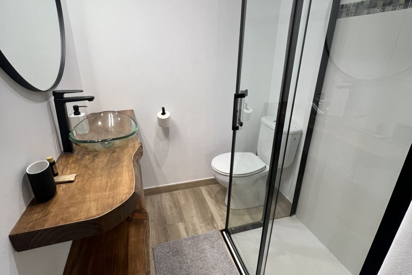 Accedemos a la casa por la terraza donde podremos hacer las comidas en verano, en planta baja se encuentra la moderna cocina y salón con chimenea de pellets generando un entorno muy cálido en los meses de otoño-invierno.