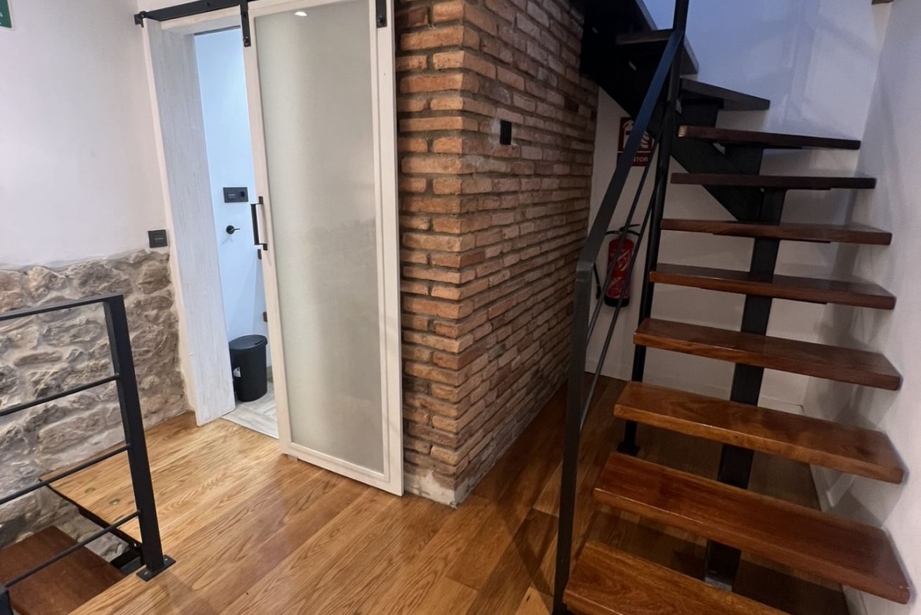 Subimos a la primera panta por la escalera de hierro y madera donde tenemos