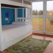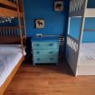 En la planta primera dormitorio principal con baño y salida directa al corredor. Dos habitaciones mas, una con cama de 1,35 y otra con dos camas de 0,90 y ventanal al exterior , un baño completo entre plantas completa la casa.